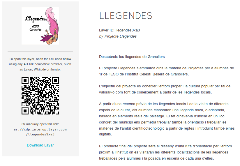 Una capa de realitat augmentada, de Layar, per compartir les ubicacions de les llegendes i els materials elaborats. Aquest és, de fet, el producte final conjunt de tot el projecte.