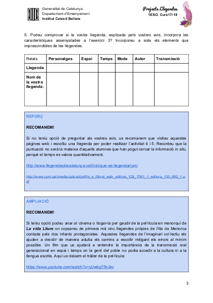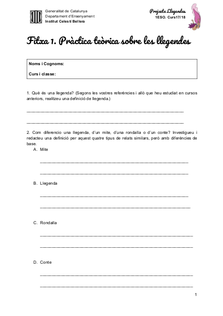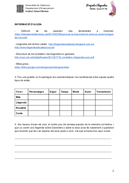 Per tal de poder elaborar nostre producte final els alumnes hauran de poder crear una llegenda però primer de tot hem de saber què és és. Per aquest motiu, plantegem una activitat prèvia, que els alumnes realitzen per parelles, i en la que hauran de fer una recerca d’informació per respondre precisament aquest pregunta: Què és una llegenda?