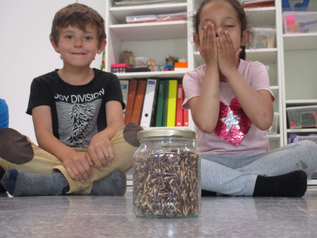 Els alumnes de 3r. són els encarregats de tirar endavant el projecte de l’hort a l’escola. Els alumnes porten a terme diferents activitats i una d’elles amb l’ajut de les Bee-bots. Per a fer aquesta activitat hem fet un tauler amb 81 quadres, cartolines amb fotografies dels diferents productes que tenim plantats a l’hort, diversos animalons que podem trobar prop de les nostres plantes i altres estris que podem trobar en el nostre hort. L’activitat es realitza en grups de 4 alumnes.