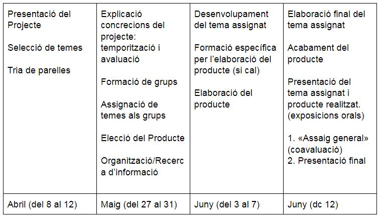 Una tercera fase, al juny, on han finalitzat el projecte, preparant l’exposició oral i el producte final.