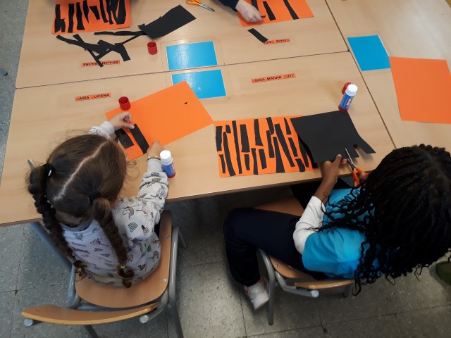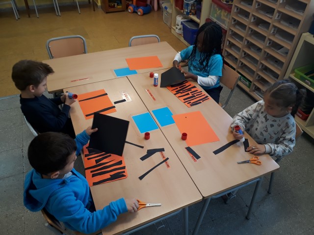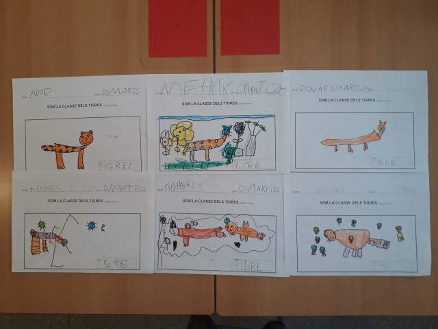 C. La pell dels tigres. Amb material que els hem ofert, han simulat la pell d’un tigre.