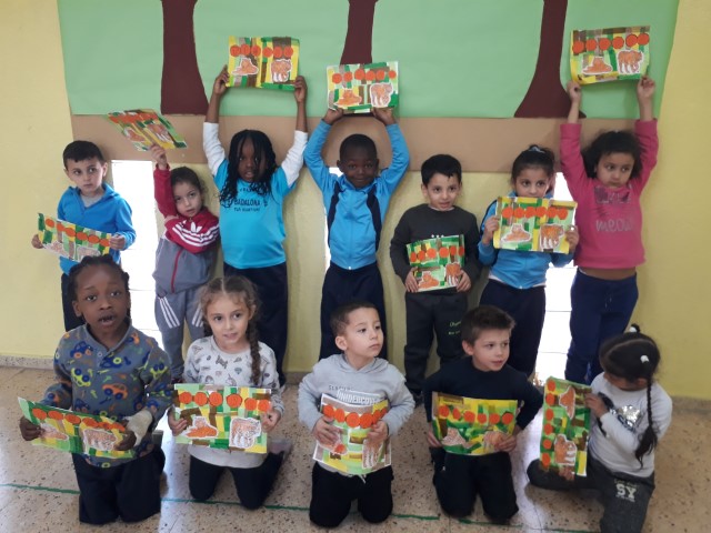B. Decorem amb màscares de tigres el nostre passadís. Després de saber com és la cara dels tigres, donem color al nostre passadís amb les originals caretes de tigres que cadascú fa. Així tothom en passar sabrà qui habita a l’aula del costat.
