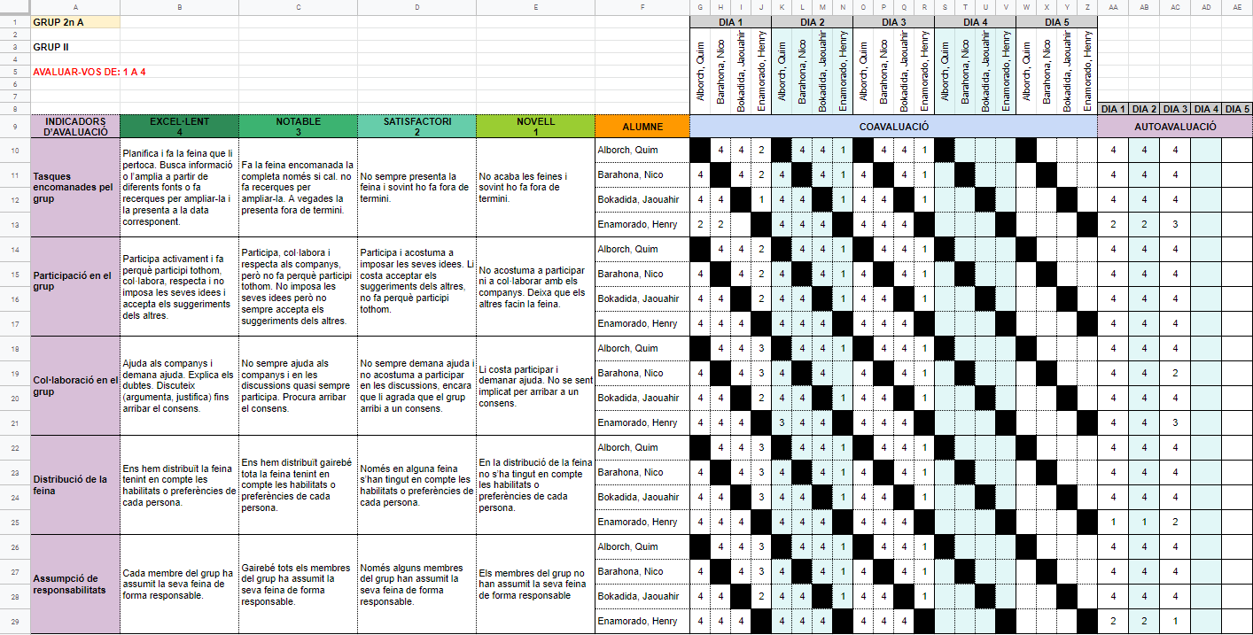 3.Rúbrica d’autoavaluació per avaluar com ha funcionat el treball cooperatiu.