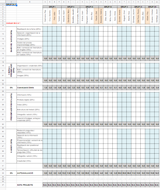 Per a l’avaluació pròpiament dita, l’alumnat faria servir rúbriques per saber si havien assolit els coneixements.