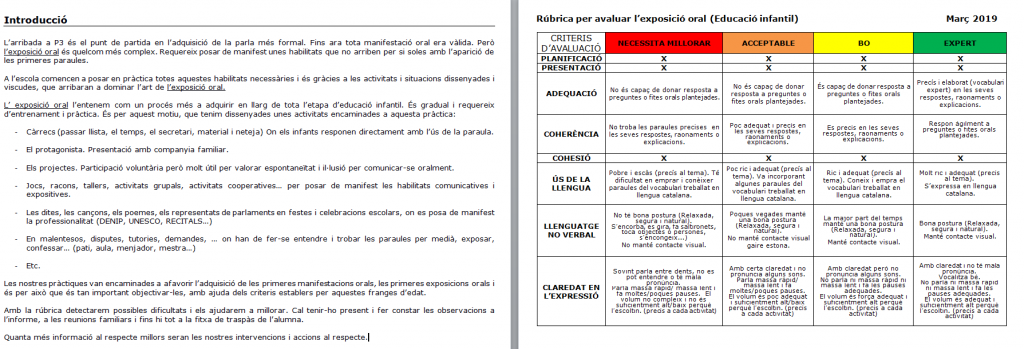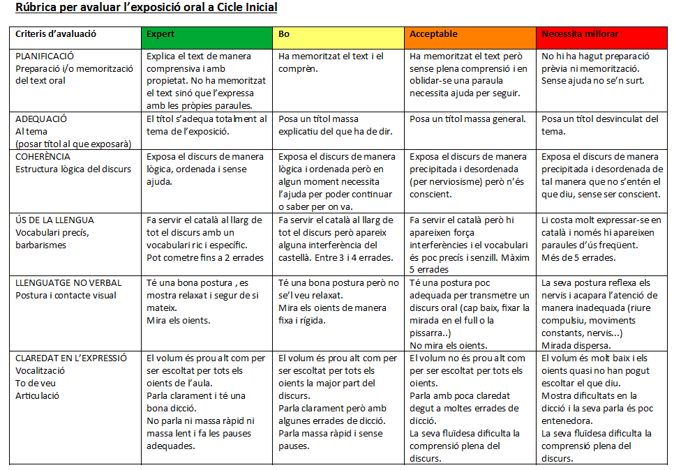 Un cop acabada l’exposició del projecte entre tots els nens i nenes de la classe fem la coavaluació del treball exposat a partir d’una rúbrica ja comentada prèviament amb els alumnes.