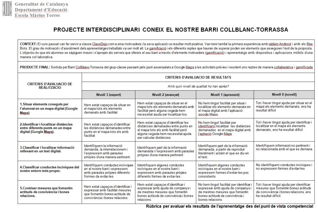 En concloure el projecte hem fet una posada en comú on els alumnes han expressat les seves vivències a l’hora de realitzar-ho. Ells mateixos han valorat cadascuna de les activitats dutes a terme a partir d’una rúbrica.