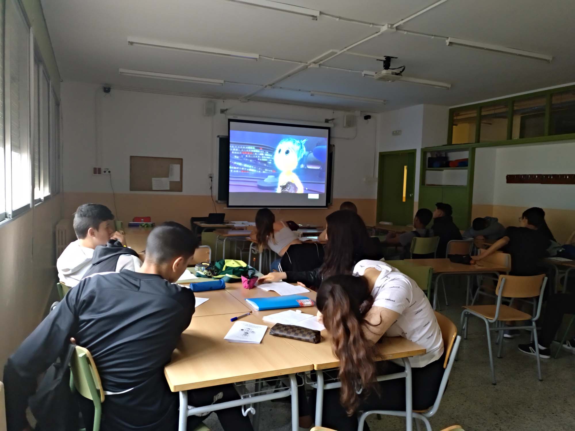 Tot seguit els passem la pel.lícula Inside Out que durarà aproximadament fins a l’hora del pati. En tornar del pati els alumnes responen les preguntes del dossier que tracten sobre la pel.lícula i s’acaba amb una posada en comú.