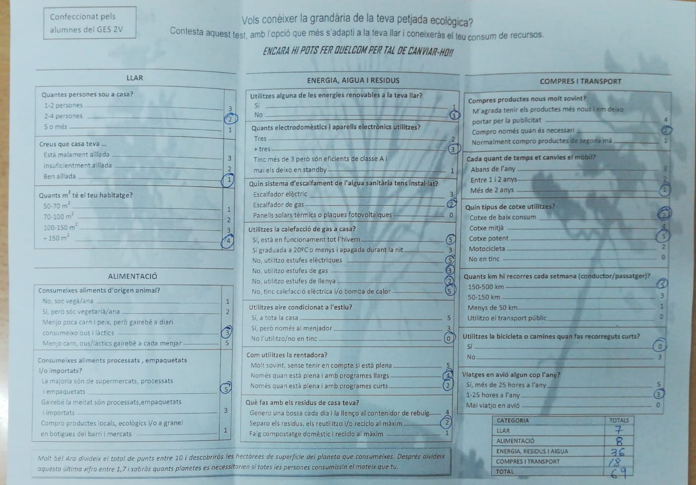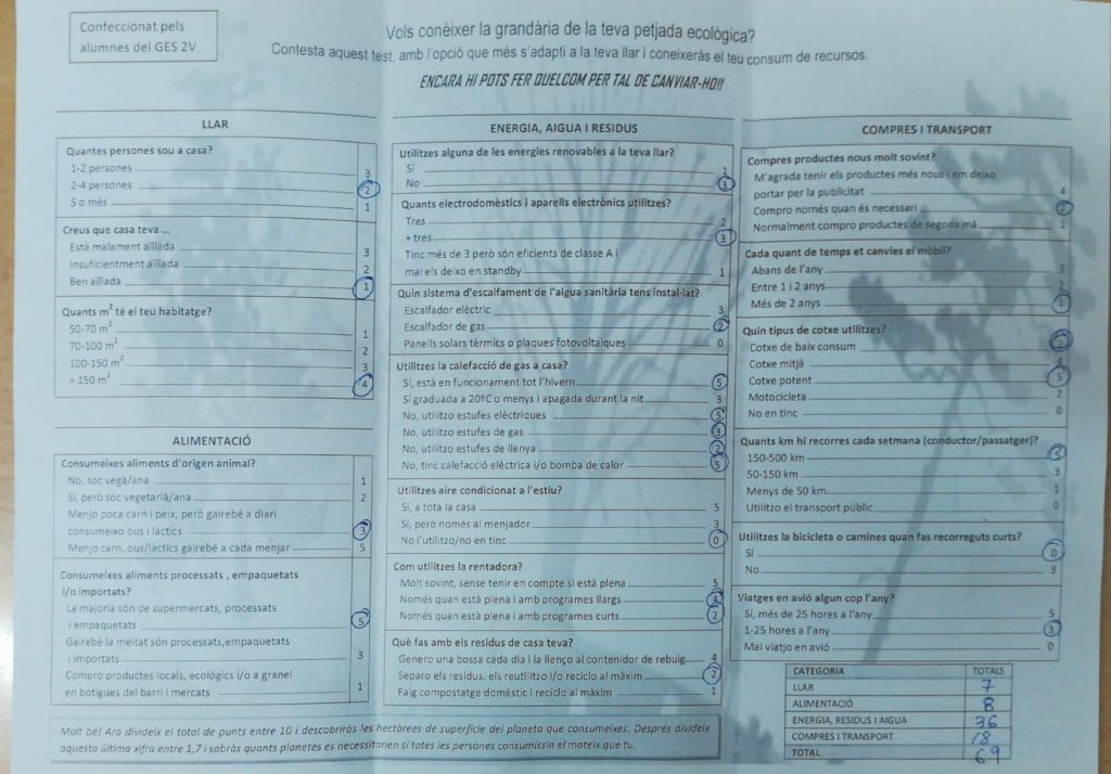 Des de l’àmbit de llengua catalana, hem realitzat un tríptic per comprovar la nostra petjada ecològica.