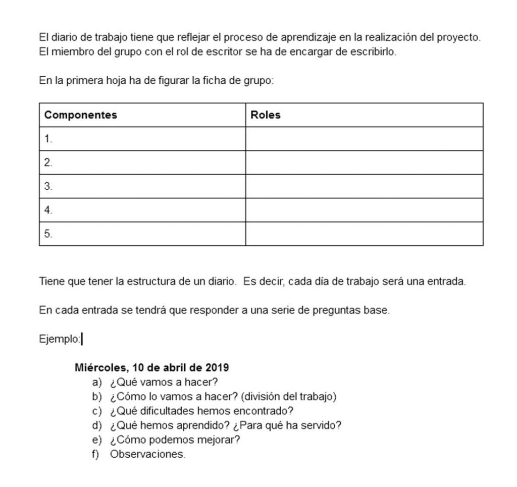 Per a documentar tota la informació, els equips utilitzen un diari de treball on fan la valoració i reflexió de la seva tasca diària.