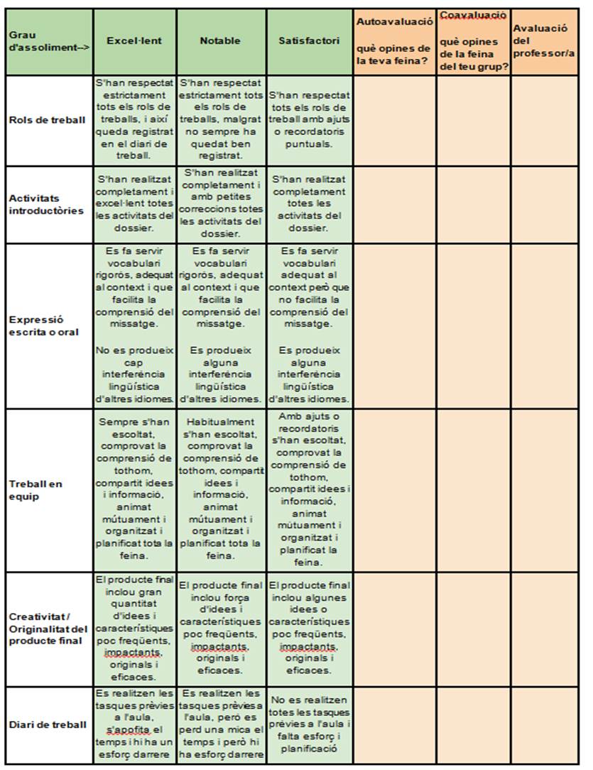 Per avaluar el projecte utilitzarem la rúbrica que trobareu a l’apartat d’avaluació.