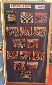 A banda de fer la partida final d’escacs vivents, hem plasmat la informació sobre el projecte en una exposició al vestíbul de l’escola amb totes les activitats que s’han dut a terme durant el desenvolupament del nostre projecte.