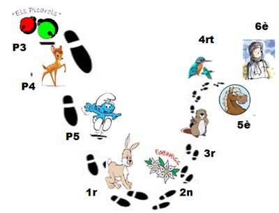 A nivel organitzatiu, l’escola dóna personalitat a tots els seus nivells educatius amb un nom propi que acompanya als alumnes fins que s’acomiaden del centre. Així comencen des de p-3 amb picarols,p-4 bambis,p5 barrufets,1r Llebretes,2n Edelweis,3r Blauets,4rt Castors,5 Mustangs i 6è Tuaregs.