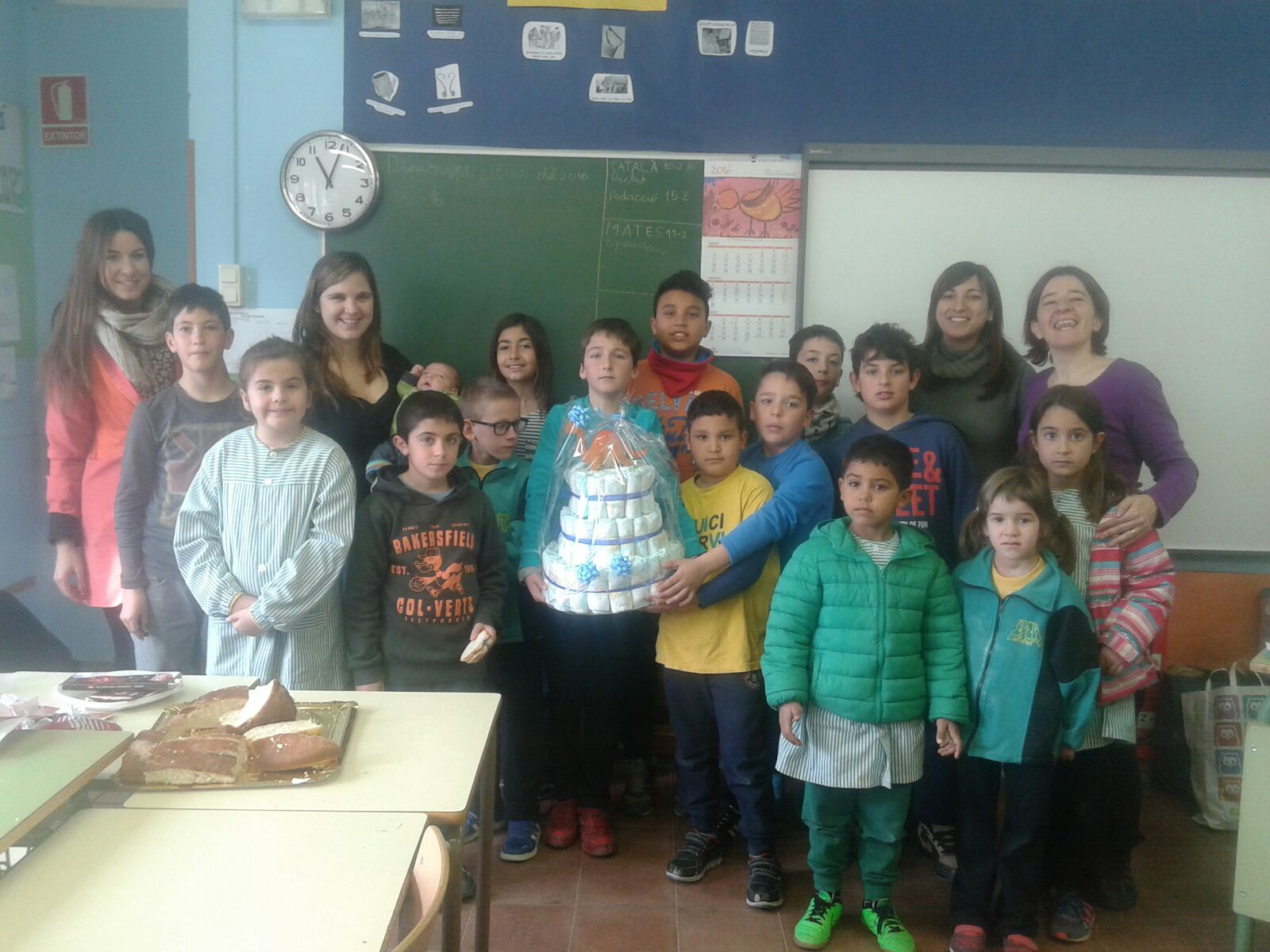 L’associació de pares i mares li van regalar un pastís de bolquers molt bonic.