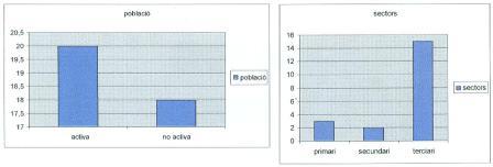 De la població activa, curiosament, tot i ser un entorn principalment agrari, predomina el sector serveis (amb feines molt variades). Pensem que és degut a que les dones treballen en aquest sector i que les tasques agrícoles i ramaderes s’han mecanitzat molt.